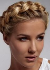 - starting from the ear region, moving to the frontal part of the head, it is worthwhile to weave short bangs hair in a circle;