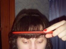 - Before straightening, treat the bangs with gel, foam or mousse, separate a small strand a couple of centimeters wide, pinch it between the plates and go over it with an iron a couple of times from top to bottom.