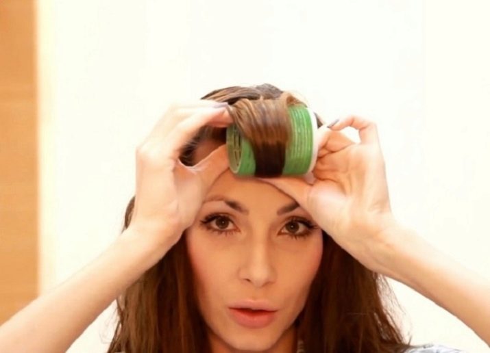 - Rinse the bangs, apply styling mousse to your hair, twist still wet strands onto velcro curlers.