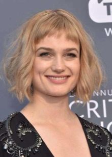 It is very careful to approach the choice of a short bang, as it has two purposes - either to expand or narrow the face, it depends on what features a person has and what effect needs to be achieved. In this case, pay attention to the length of the selected option - it can depart quite a bit from the hairline, leaving the forehead almost completely open, or have a length of about 5 centimeters.