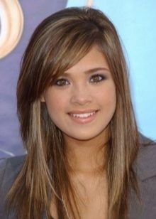 If the lower part is much narrower than the upper, then in this case it is necessary to pay attention to the milled or beveled long bangs. This option will smooth out sharp, protruding cheekbones.
