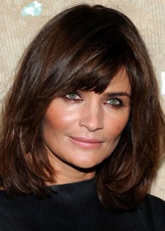 Deep bangs from the crown to the eyebrows will go only to very thick and dense hair. Stylists also insist on constant care, because such a haircut should always look very smooth, straight and shiny healthy shine.
