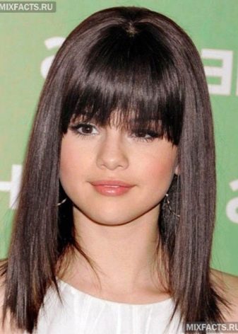 If you can not be attributed to the owners of thick hair, then be prepared that the straight bangs will look a little greasy, even if you washed your hair just a few hours ago. Also, on thin hair, it may take significantly longer to style your hair. With curly hair, you should not choose a straight bang, since then you will have to straighten daily not only her, but all other hair, and the constant use of irons and other styling products causes significant damage to the hair.