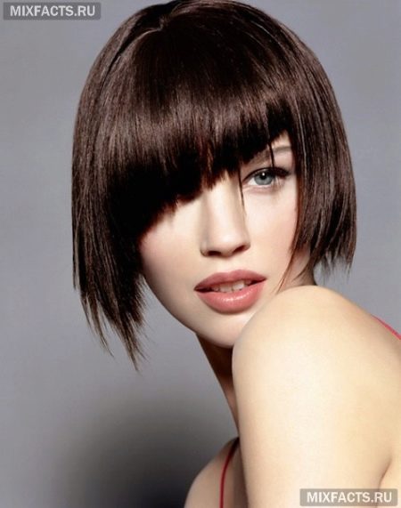 - Classic straight model never goes out of style. Most often, it is cut off on the very eyebrows, and sometimes slightly covers them. To maintain a clear, straight contour, tip finishes are not applied.