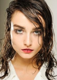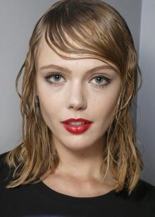 - A bang on one side with the effect of wet hair is another original and attractive solution.