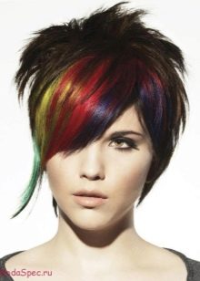 For example, young and courageous girls who love bright and innovative solutions often paint the side bangs in blue, purple, burgundy, white or black.