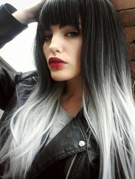 Lovers of unusual solutions will like the option of using contrasting shades. In this case, the paint is applied both to the hair and to the bangs, creating a single composition. The border of the painting should be respected clearly enough to look stylish.