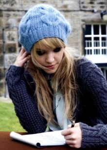 Voluminous knitted berets are an excellent option for long-haired beauties with bangs of different lengths. If desired, this accessory can be worn by sliding it a little to one side. And you can move it to the back of the head, thereby creating a new image.