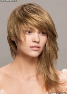 A bang can be profiled by adding airiness to it, or decorated with a blunt cut, making it voluminous and massive. If you pick up a bangs for haircuts such as cascade, then you can draw strands on your face by cutting them with a “ladder” and then the elongated bangs will become a harmonious completion of your image.