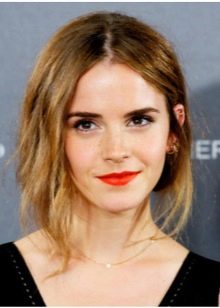- Parting - the separation of the strands of hair together with the bangs can be performed exactly in the middle relative to the center of the forehead, or the parting can be shifted to the right or left. The essence of styling is that the strands are located in an even and smooth layer on each side of the parting. And you can fix these strands in the form of a hoop on the back of the head or leave them in free overhang. There is another option - to fix part of the strands with a hairpin at the temple.