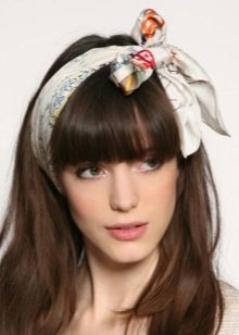 - Scarf or scarf - This method is quite easy to implement. You will need a ribbon or scarf that can be combined in color with your main outfit and complement it. When laying, gently comb the strands from the forehead to one side, and then around the head over the hair we tie a scarf. The knot can be hidden behind under the hair or, conversely, tie it on the forehead in the form of a bow. There are many variations, but the essence is the same - remove all long strands under a wide ribbon.