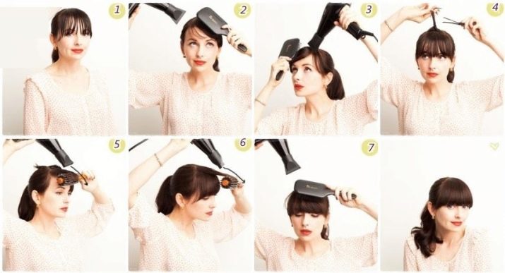 - Straightening - This styling method is performed by pulling the strands using a brush and hairdryer. The hair is led away from the face to the side and the ends are either curled outward or tidied inward. This styling technique looks especially beautiful on beveled bangs, and such a hairstyle looks very elegant and natural.