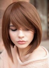 - This is a classic straight to the level of the eyebrows and slanting bangs to the line of the chin. Such a duet of strands creates layering in any hairstyle.