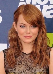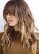 Long strands are great for girls who need to adjust facial features. This is an ideal solution for women with an extended type of face. Oblique bangs create softer and more feminine images, softening the square and rectangular shape of the face.