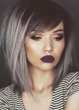 Perfectly combined oblique bangs of medium length with a square and a cascade. Thanks to this combination, a light image is created that successfully emphasizes the eyes and lips.