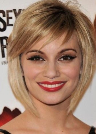 The short version with torn edges is ideal for chubby ladies. However, girls with a large nose and long face should avoid short bangs. Oblique bangs need constant and quality care. You need to visit a hairdresser and make corrections regularly.