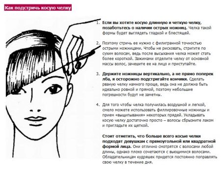 In addition to the indisputable advantages, slanting fringe has a number of features that must be taken into account.