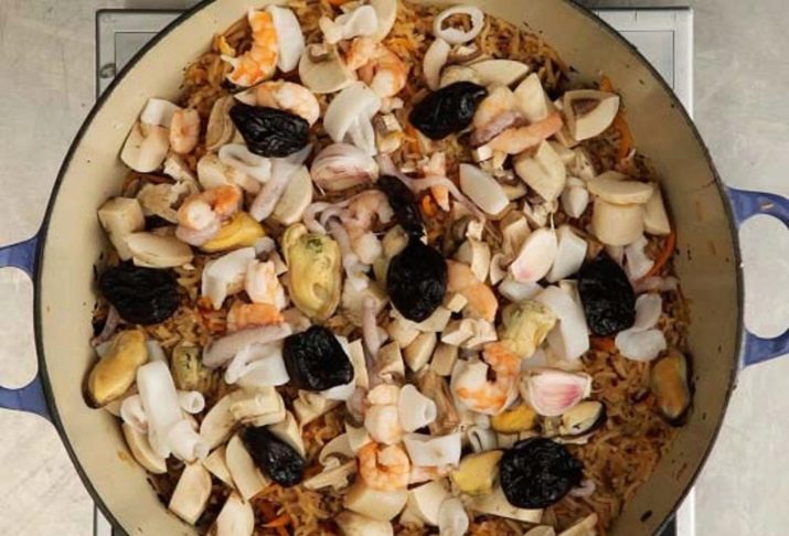 - pilaf with a variety of seafood;