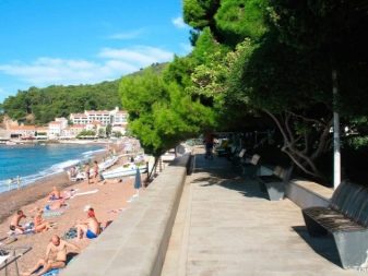 The line near the city beach is conveniently planned - there are cafes and restaurants, small shops and souvenir shops within walking distance. The well-equipped embankment runs along the seashore and rests against a small pier - from here you can go on a small voyage in a small boat and see other cities and beaches of Montenegro.