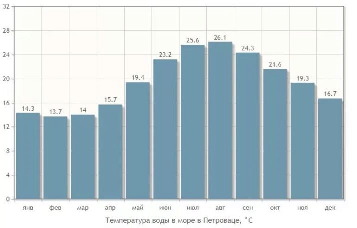 Weather in the resort Petrovac has its advantages - about 300 days are sunny in a year. Even in the off-season, it is pleasant to be here and enjoy the clean air, the sun and beautiful sea views.