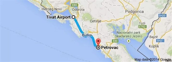 The distance on the map from Tivat to Petrovac is 38 km, and from Podgorica a little more - 46 km. It is best to choose the airport of arrival of Tivat, since the largest number of flights departs from Moscow there.