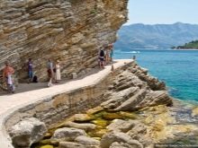 Walking along steep cliffs, you can see Monument to a sophisticated ballerina or gymnast. However, no one knows the exact name of this statue and its history. One thing is for sure - this is an image of love, faith, hope and a symbol of Budva. Going around powerful stone cliffs, the road enters the first bay, where Old Budva looks great from this angle. There is also Mogren I.