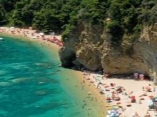 The Ulcinj Riviera is also good. The farther south you move along it, the fewer people. Closer to the Albanian border, the beach strip merges into one large beach, covered with black volcanic sand. Very small grains of sand can clog any items. Due to the lack of natural barriers, a strong wind often blows here, so the beach is suitable not for sunbathing, but for extreme sports.