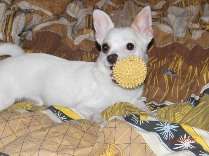 An adult white Chihuahua does not require laborious care of his coat. Depending on the length of the dog’s hair, it is necessary to comb out - short-haired at least 2-3 times a week with a natural brush, and long-haired - daily, using a comb or comb. Also, regular inspection and cleaning require the eyes, nose and teeth of an adult animal. Teeth are cleaned with toys and special sticks for brushing teeth.