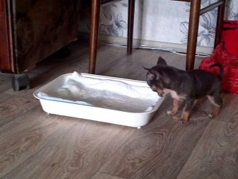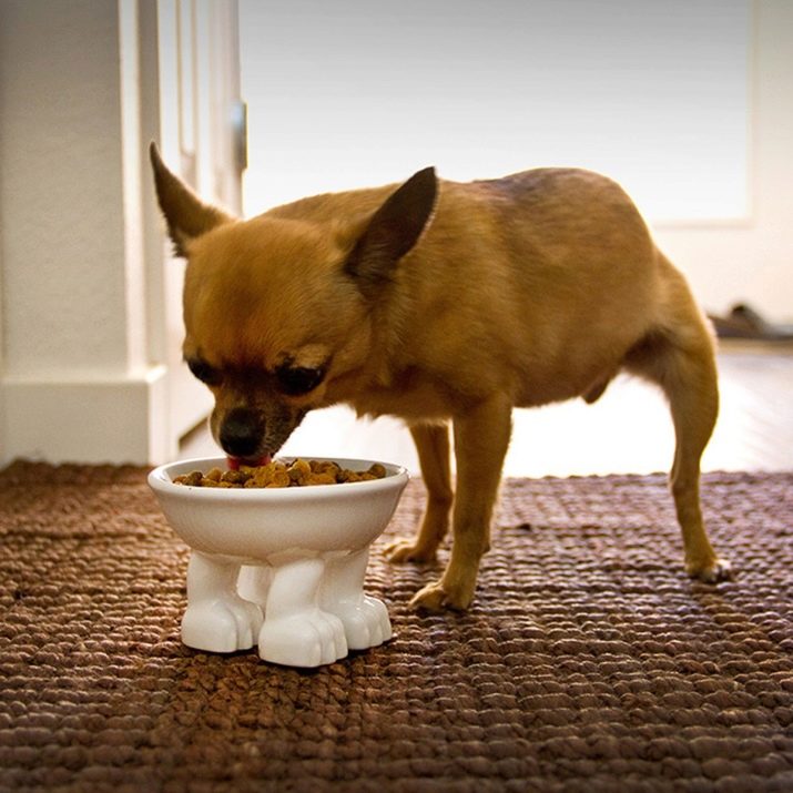 It is best to choose small designs so that the dog does not freeze in them. As the dog grows and develops, the tray with saucers will need to be gradually moved away and set in the final place after a couple of months, for example, the bowls can be placed in the kitchen, and the tray in the bathroom or on the loggia.