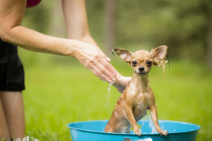 Chihuahua's wool is contaminated quite slowly, it is a very clean animal, so dogs do not require frequent bathing. All washing procedures are carried out only as greasy perspiration occurs, if you arrange this more often, then this can cause overdrying of the skin. Chihuahuas are usually bathed 3-4 times a year, and you need to use specialized shampoos for this.