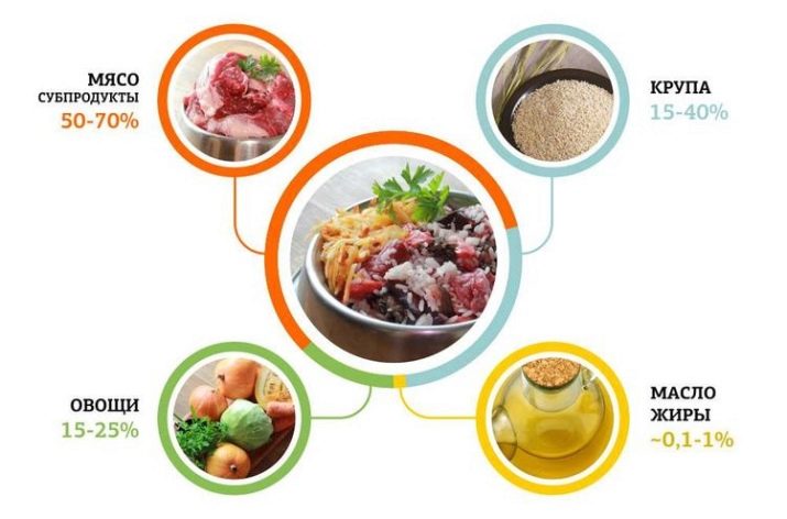 The meat is only boiled, a couple of times a week it is allowed to eat offal, it is best to use the liver and heart. The source of carbohydrates for the pet is porridge - dogs like buckwheat, oat, corn and rice. It is best to cook them in meat broth, and add a little grated cheese for taste. Vegetables are added to the feed as a useful vitamin supplement: carrots, as well as pumpkin, potatoes or zucchini, always in crushed form with the addition of sunflower, linseed or sea buckthorn oil.