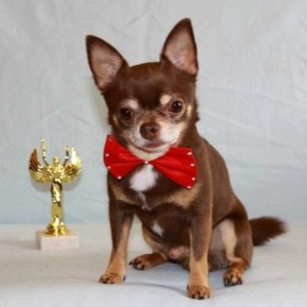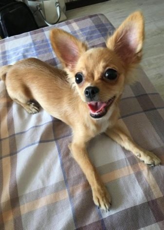 The fawn dog is so light and graceful that during running it gives the impression of hovering above the ground, as if its paws did not touch it. According to the breed standard, the size of the animal should not exceed 23 centimeters at the withers. Babies weigh from half a kilogram to three kg. Chihuahua looks as follows.