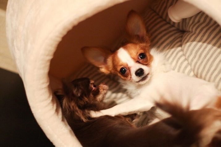 The first thing to take care of upon arrival of a new tenant in the house is the arrangement of his personal place, territory where the puppy can feel comfortable. Such a shelter should be located in the room, but not close to windows, radiators, drafts and walkways. It is desirable that the chihuahua dog can see the owner from his house or from the couch.