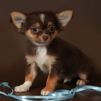 A very beautiful variety of chihuahua. This color looks most spectacular on pets with long hair. The color saturation of the coat can be from the lightest purple to dark purple. A similar color is most often supplemented with whitish spots on the chest and on the toes. But the presence of white spots on the back and sides of the body is excluded. Sometimes you can find purple tricolor.