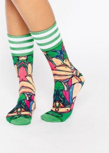 Women's colored socks quite often have a solid color, but many ladies prefer colorful products.