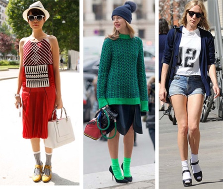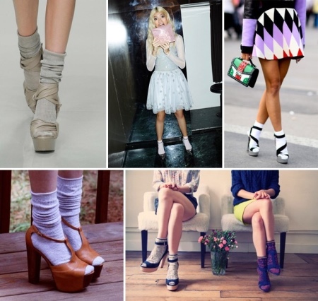 Colored cotton models with an elongated upper part are often used as decor, combining with shorts or short skirts. Typically, the product is worn over light tights, so the outfit looks more vibrant and creative.