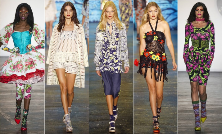 Color combinations on such products rarely have a chaotic arrangement, most often they are presented in the form of stylish prints. Consider the most popular of them.