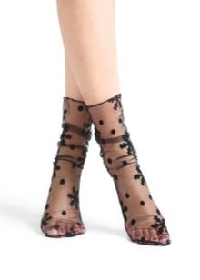 The finest socks made of transparent material or mesh will become a bright highlight of the romantic outfit from a beautiful fluffy dress and shoes or sandals.