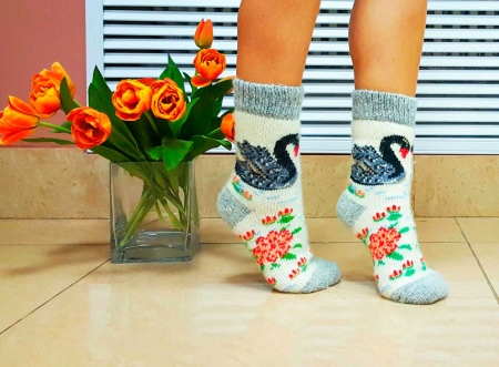 Socks made of warm wool will perfectly complement the skirt, knitted dress, denim shorts or jeans.
