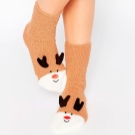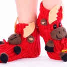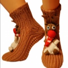 Skilled craftswomen knit socks with knitted deers. They look very colorful and festive. Such "home slippers" will be enjoyed not only by children.