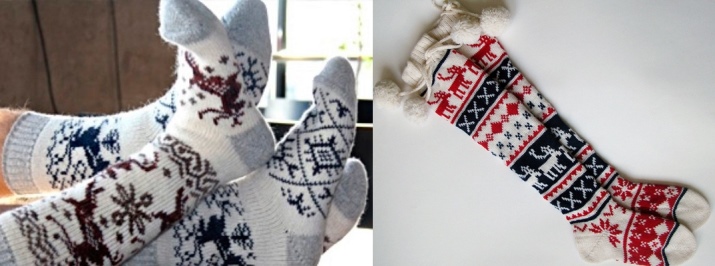 A pleasant Christmas theme is liked by all customers. Warm socks with a Norwegian ornament become a priority choice of accessories for the cold season. Often, deer socks become a Christmas present. They are bought in a store or knit on their own with care for those closest to them. The product, made by yourself, warms your feet and pleases the soul.