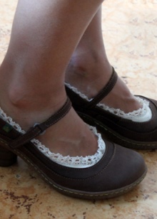 Lace tracks are also popular. The model made of thin lace looks very feminine and is able to decorate any image. Lace socks are the only option that is allowed to be worn with open shoes, since in this case the socks-traces carry a more decorative function.