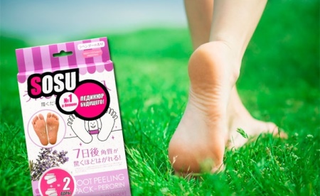 Following modern trends, cosmetic companies are trying to produce products that can help girls take care of themselves at home, but get the same effect as in a beauty salon. One of the first women came to the aid of the Japanese company Sosu, which released a series of products for skin care of the legs. The most popular are pedicure socks, which allow, without leaving the house, to fight with coarse skin of the feet.