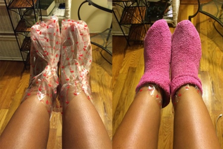5. You need to be in pedicure socks for at least an hour. You can increase the procedure time up to 2 hours. The exposure time depends on the condition of the skin of the feet.
