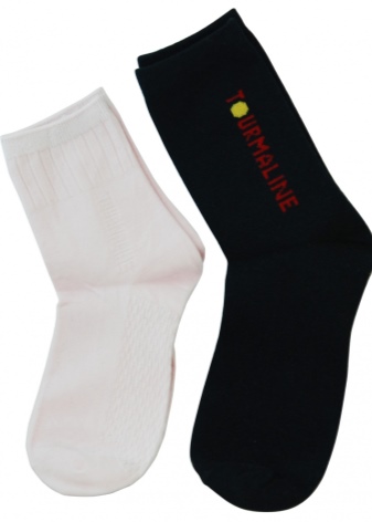 Thanks to the healing properties of tourmaline, the idea came up of creating socks that will have a physiotherapeutic effect.Many companies are engaged in the production of tourmaline socks. They have a positive effect on the legs - relieve fatigue and swelling. The stone is used on the sole. With it, manufacturers create a variety of patterns.