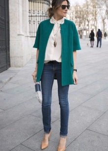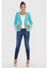 - As a casual urban look, you can choose dark blue jeans, a gray top, a turquoise jacket and a matching necklace.