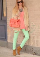 - Coral. With this shade, like with pink, you need to handle it delicately and put it in bows moderately. For example, only shoes and lipstick, or a small handbag and earrings, can be coral. In this kit, this color will be the highlight.