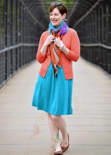 - Orange. This can be a jacket, cardigan, pants or skirt, as well as a blouse. As accessories for a turquoise dress, orange jewelry will do.