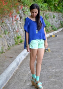 Shorts of such an unusual color allow you to look feminine, even if all the other parts of the wardrobe are designed in a sporty style. For example, sneakers and a T-shirt or sweatshirt.
