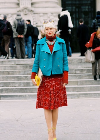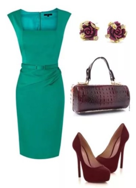 - Wine color. It is better to use it in additional accessories. And let them be turquoise, for example, a blouse or dress.